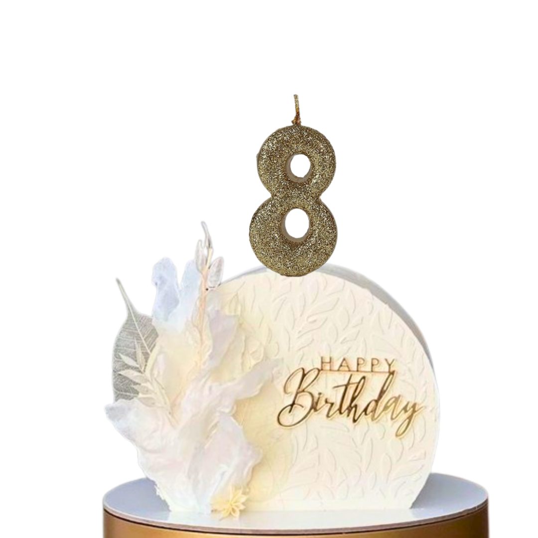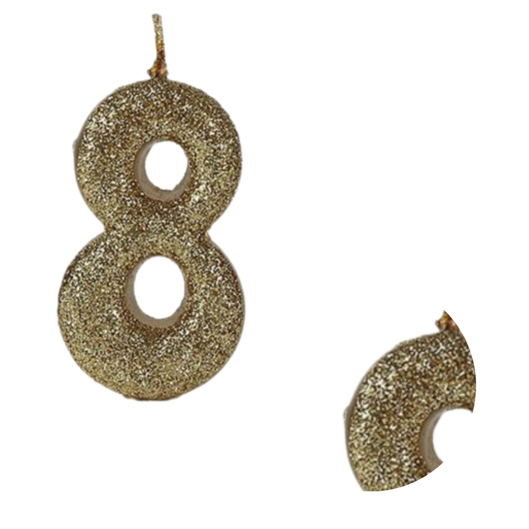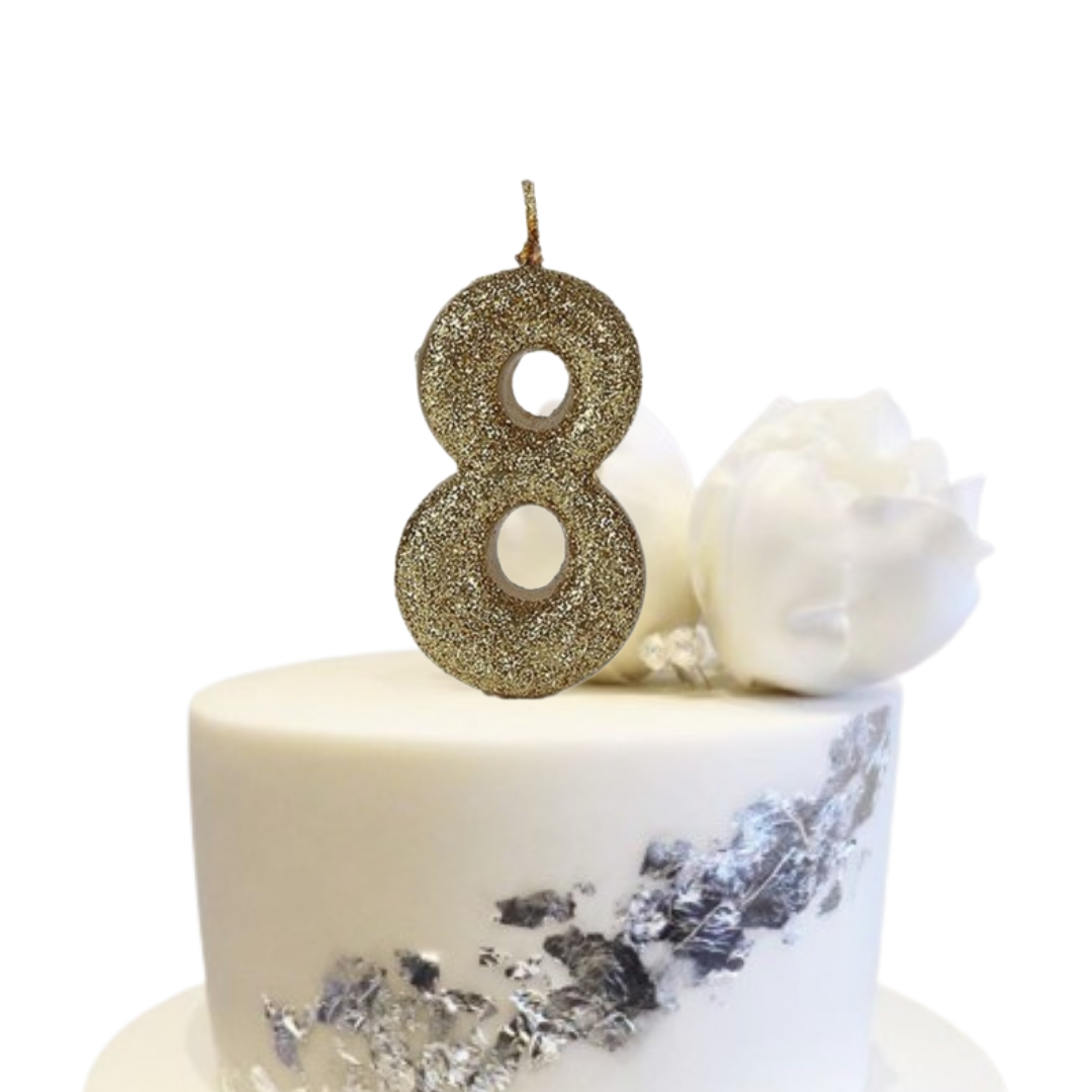 Glittering Elegance: Elevate your birthday or milestone celebration with our dazzling Glitter Gold No. 8 Candle, radiating shimmering splendor atop your cake. Representing creativity, expansion, and growth, the number 8 candle is ideal for commemorating significant milestones and achievements.