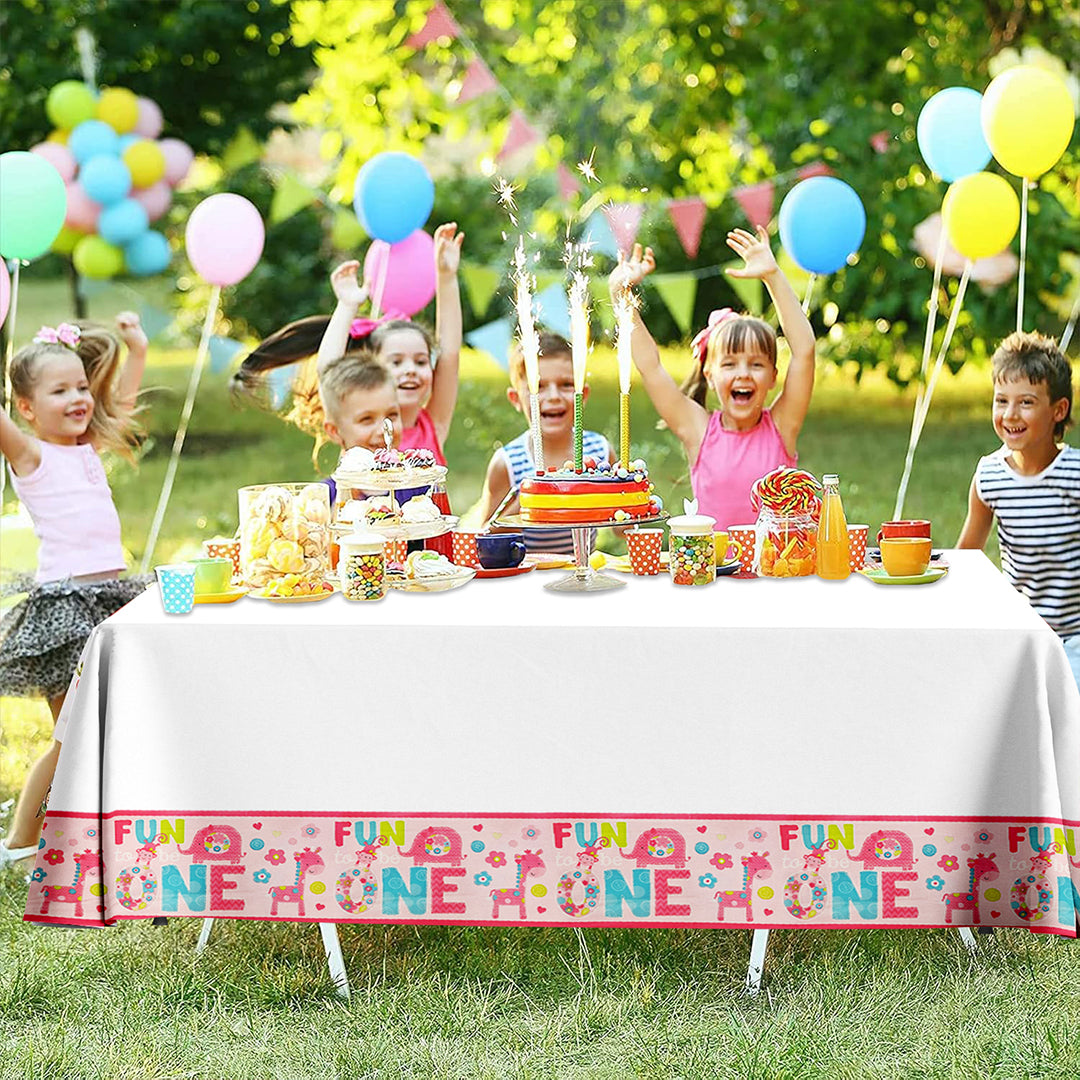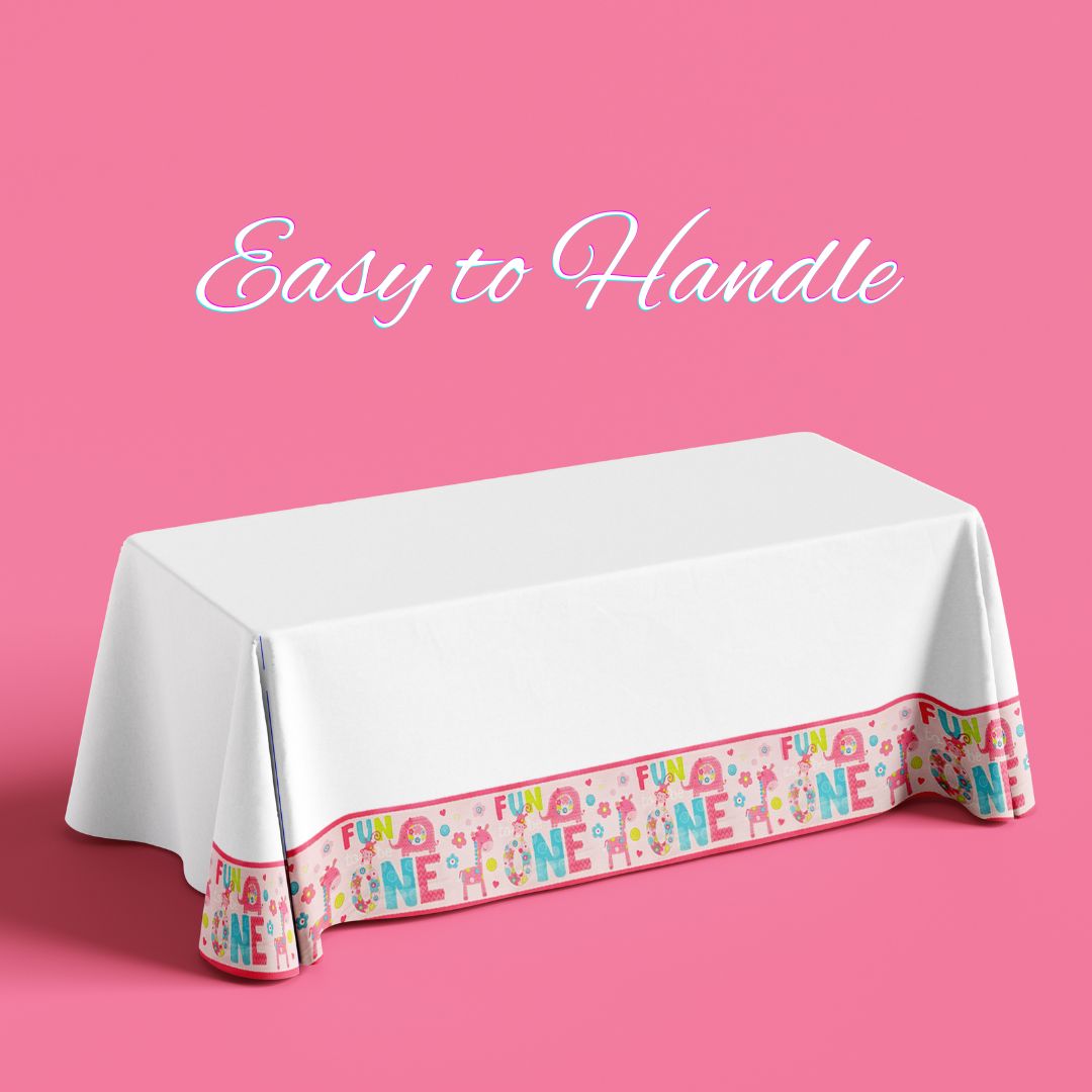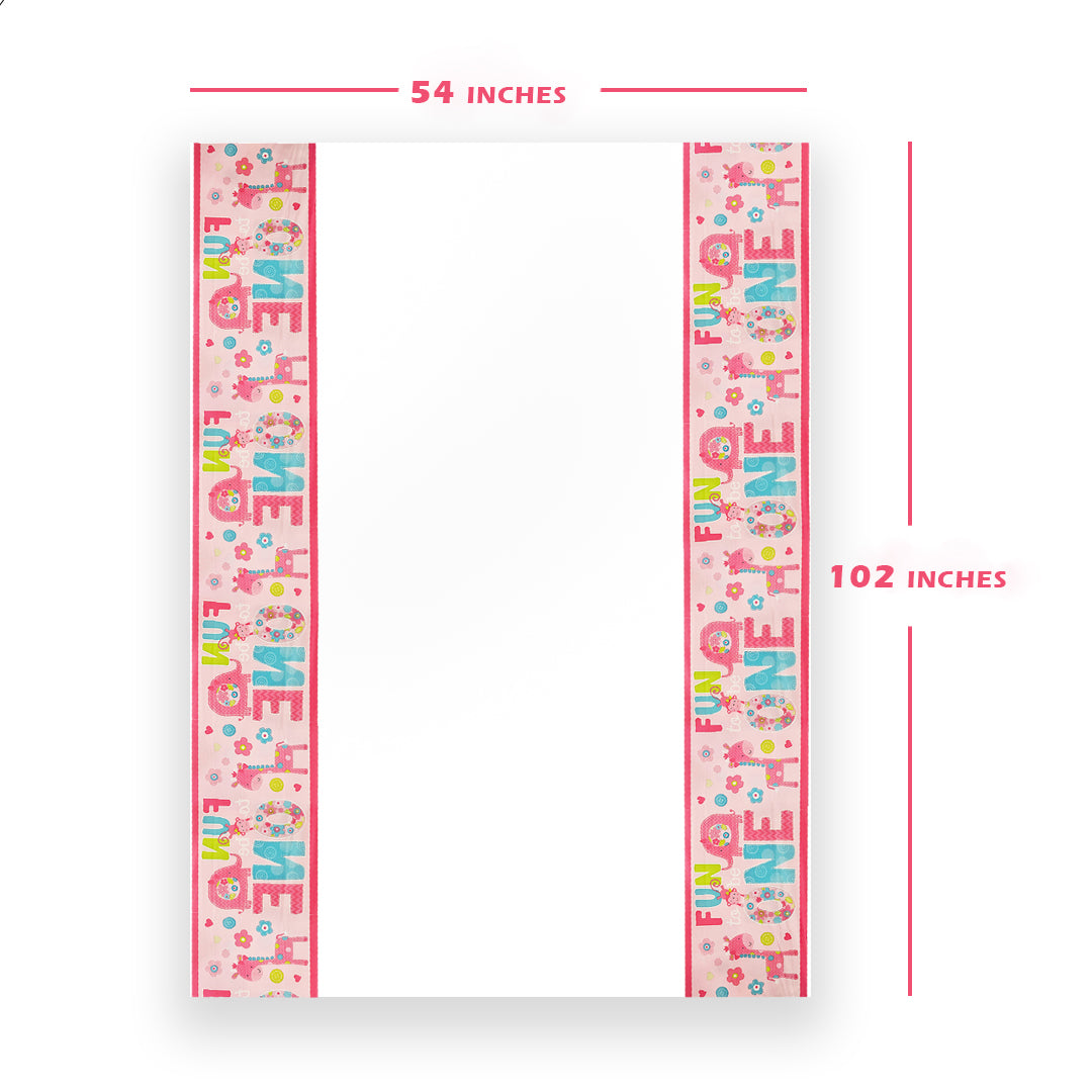 Adorable ‘One Wild Girl’ Theme for 1st bday Parties: Celebrate your baby girl’s big milestone with this vibrant “One Wild Girl” tablecover! Featuring cheerful pink tones, animal prints, and playful “Fun to Be One” text, it adds instant charm to your party décor. It’s the perfect addition for a jungle-themed or girly bday bash, setting the stage for a festive and memorable event filled with smiles, giggles, and great photos.