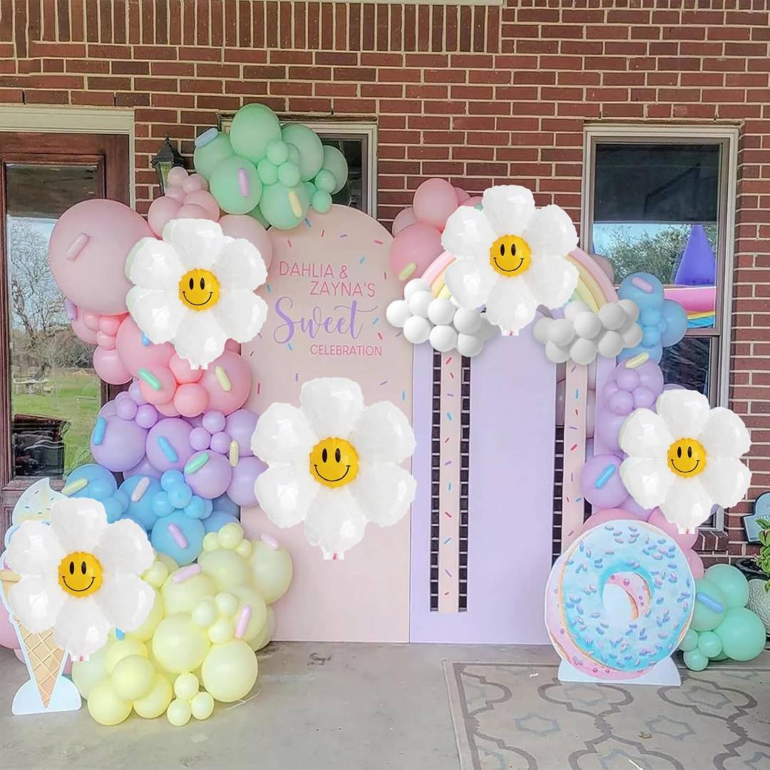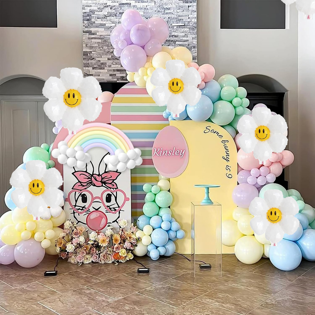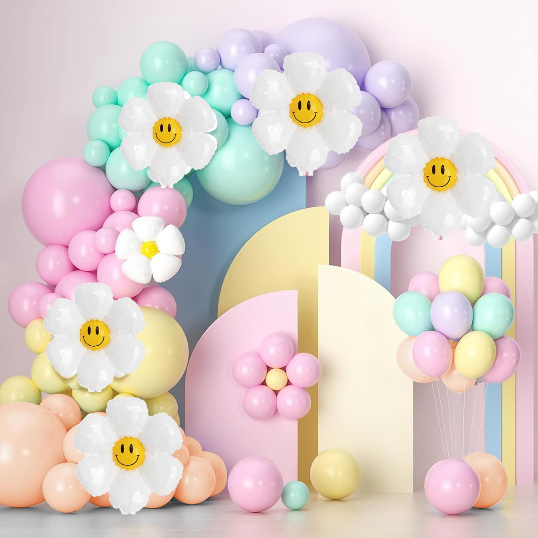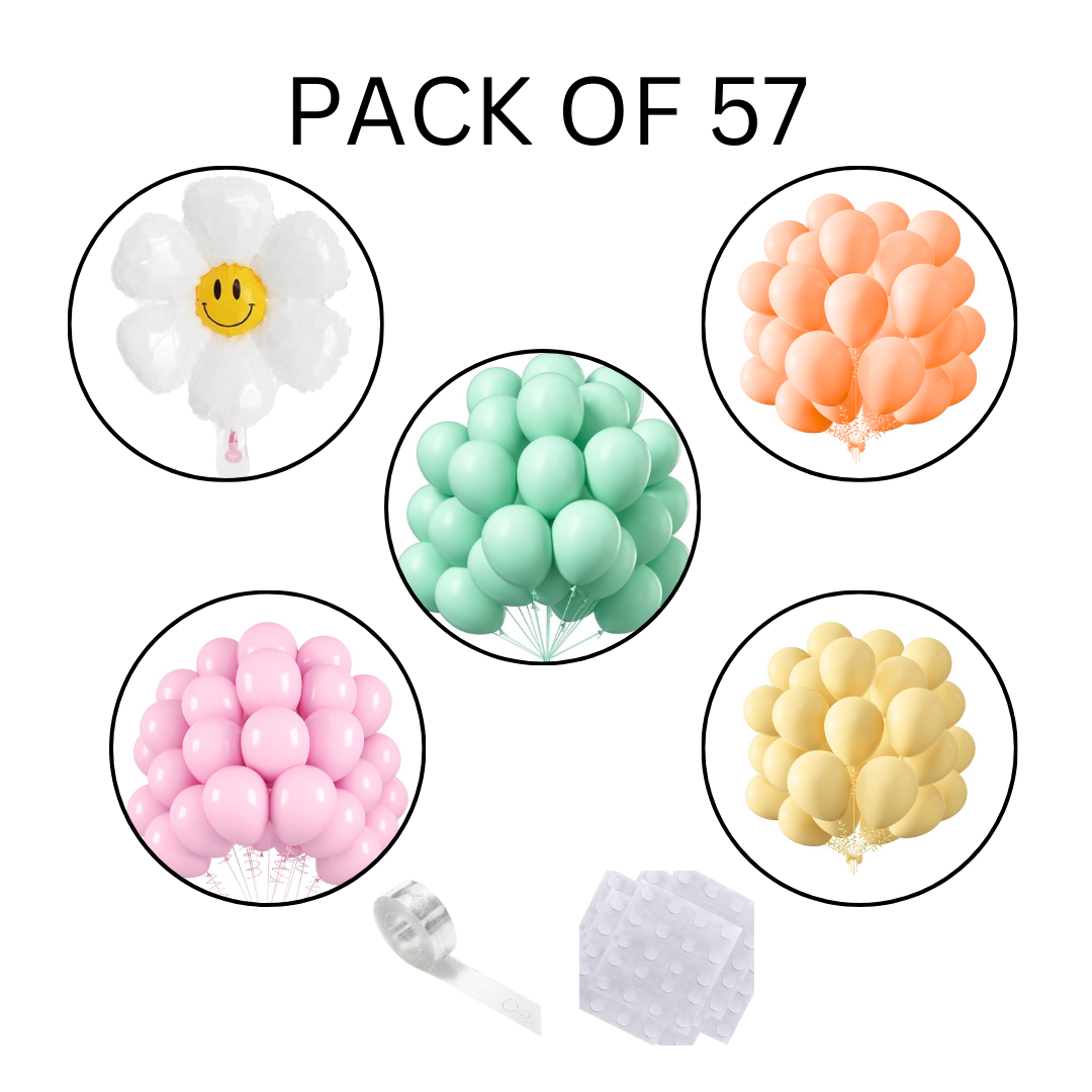 Pastel Rainbow Birthday Decoration Items - set of 57 Rainbow Theme Happy Birthday Decoration Kit | Pastel Daisy Flower Balloons for Birthday Decoration Set | Rainbow Theme Decoration