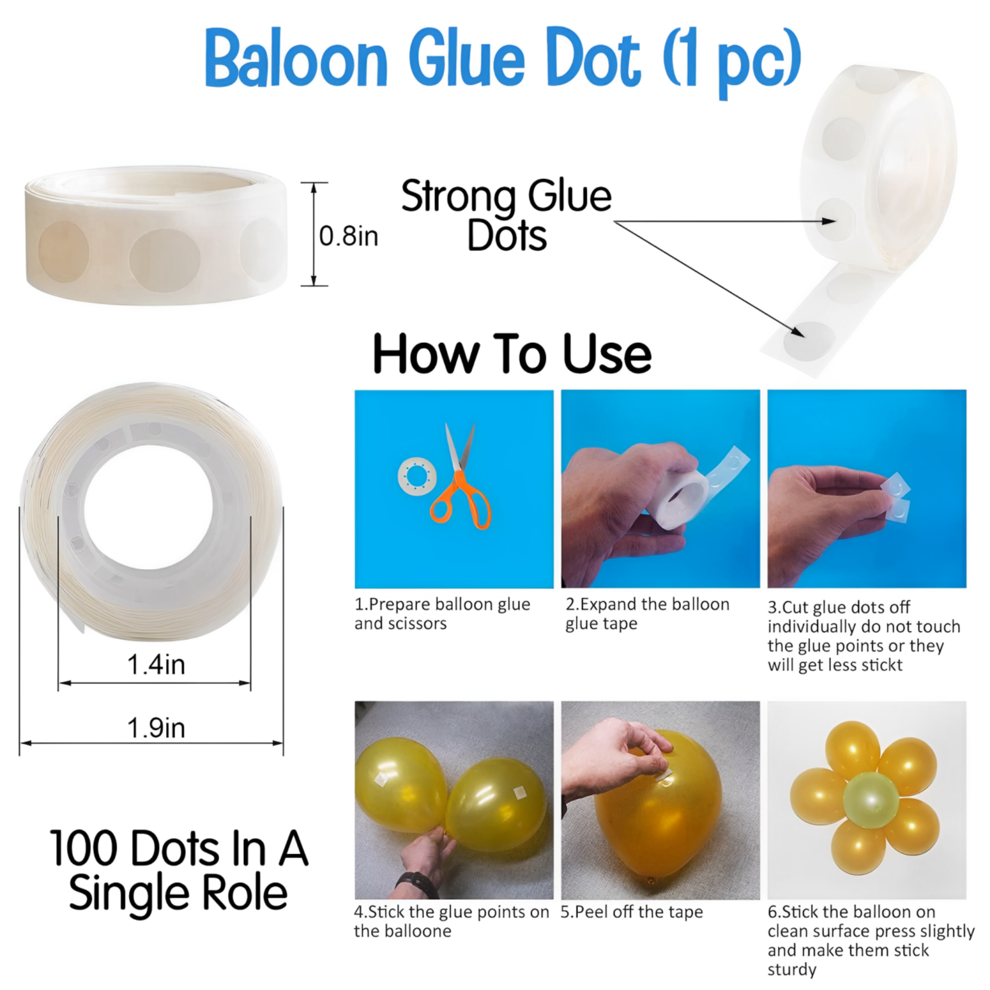 Glue Dots for Simple Assembly: The set comes with 1 pack of glue dots, making it easy to secure balloons and create a neat, professional-looking decoration setup with minimal effort.