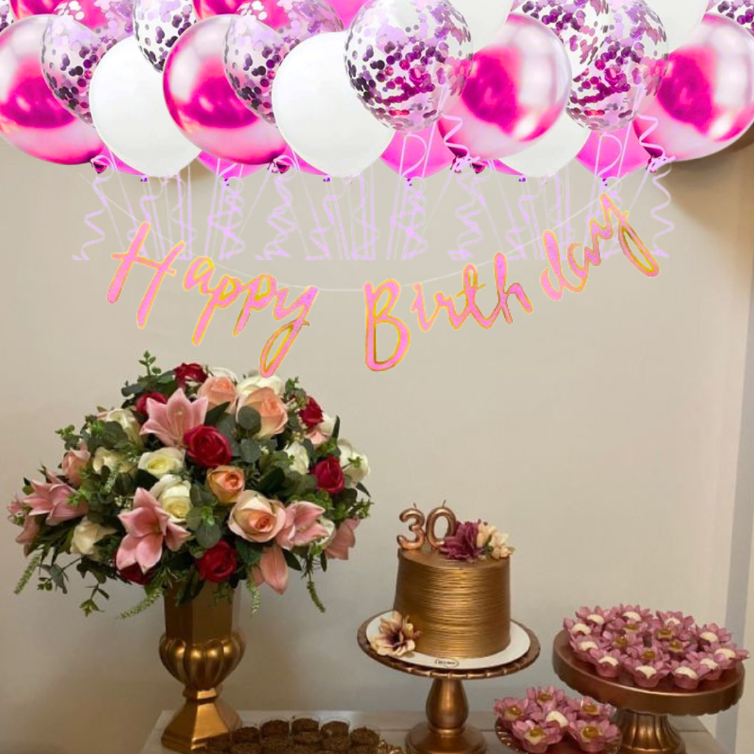 QUALITY PRODUCT | ELEVATE YOUR EXPERIENCE: Have no worries at all! We are very confident with the quality, durability & incredibly stylish of our sturdy shiny PINK Happy Birthday Banner and Balloons Set. We are always happy to help you regarding this happy birthday decoration set . This happy birthday Pink banner will bring you a smile and joy on your happy birthday decorations for women