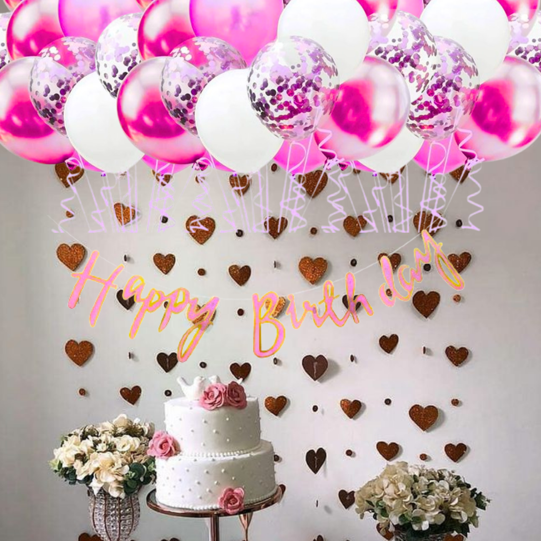 [Perfect Party Decoration Set]: The package includes 1 Pink Happy birthday banner + 10 pcs Rose gold confetti latex balloons + 2 Self Adheive Wall Hooks