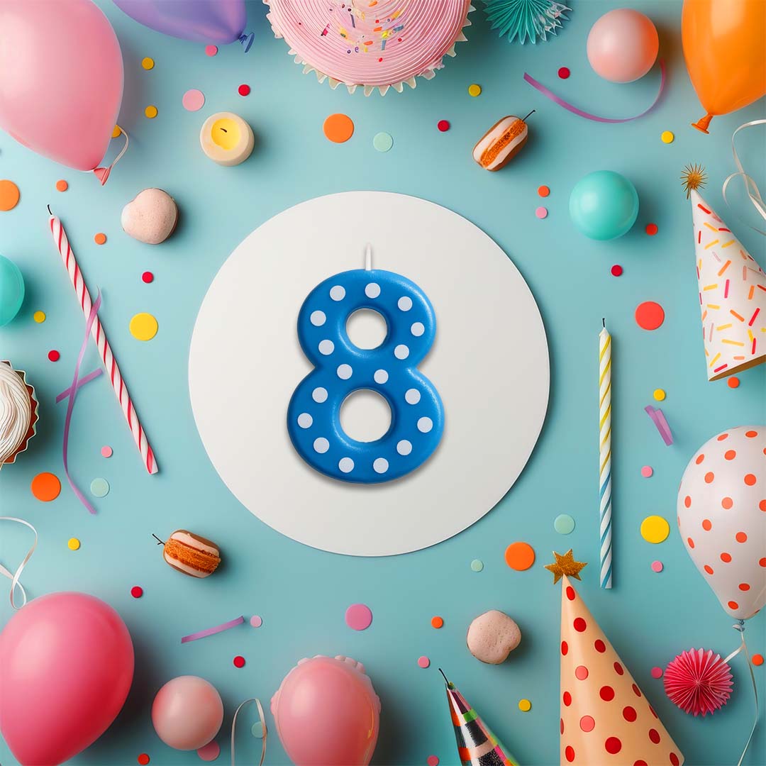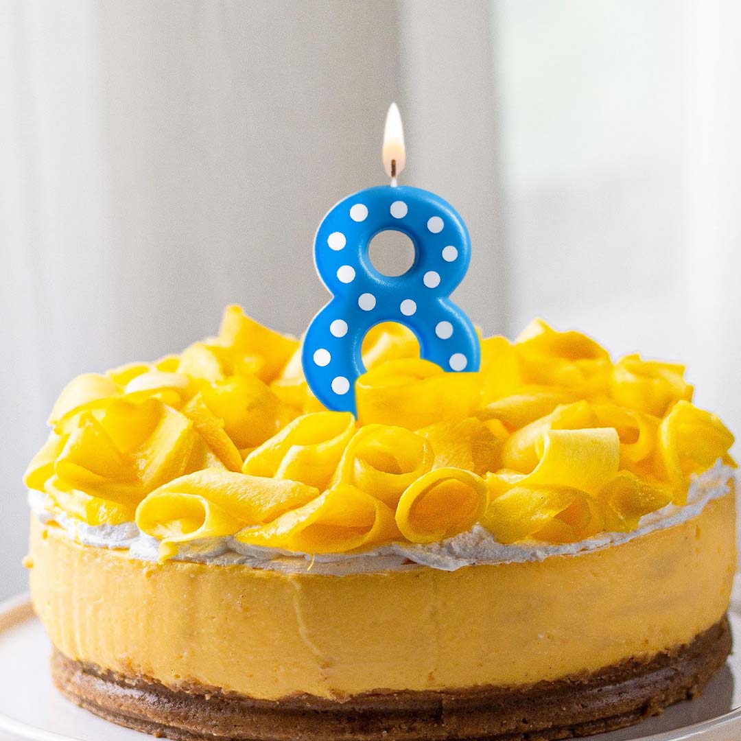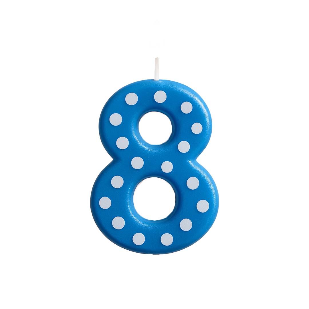 Number 8 Blue Polka Dot Candle - 1PC