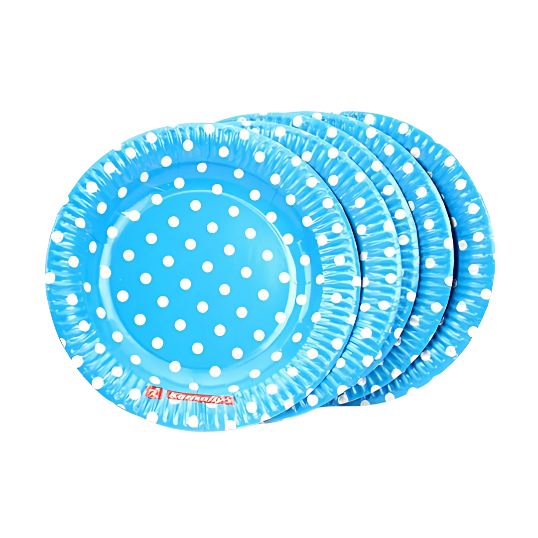 Blue Round Party Paper Plate w/ White Polka Dot - 10PC