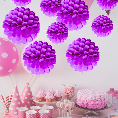 Purple Paper Pom Pom Hangings For Wall Decor -10 Inch - 5PC