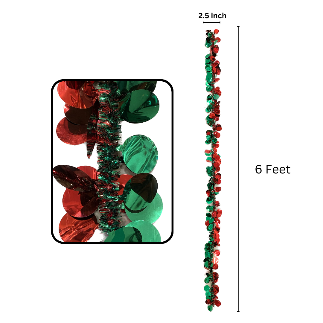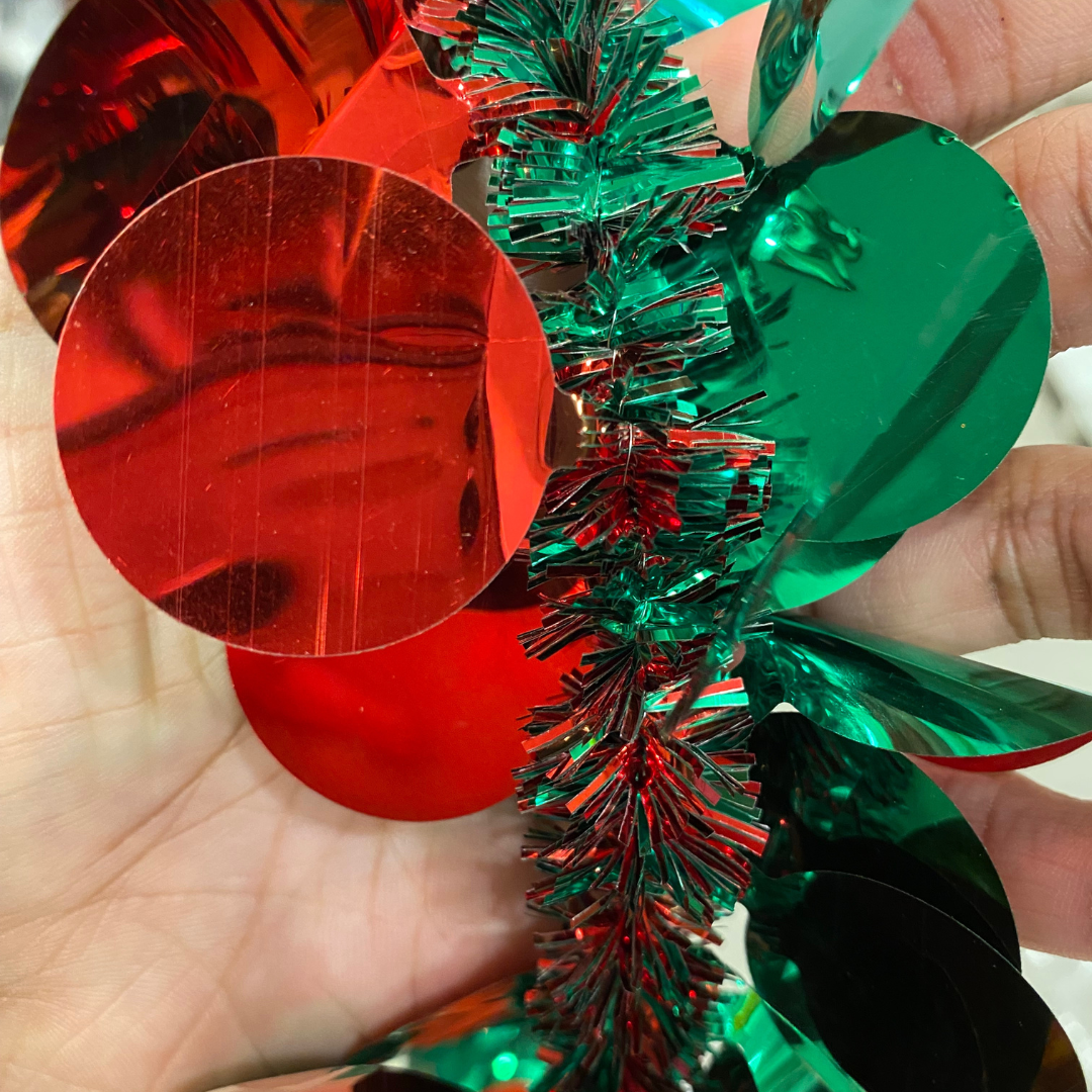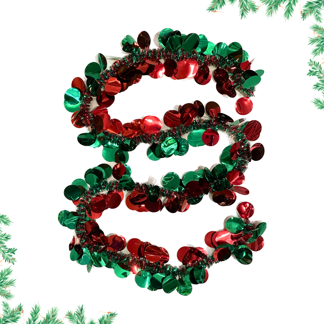 Wanna Party Christmas Tinsel Garland, Tree Wraps,Sparkly Round Circles Tinsel Garlands with Wire for Christmas Tree, Home, Wedding, Party, Festive Ornament (Red,Green)