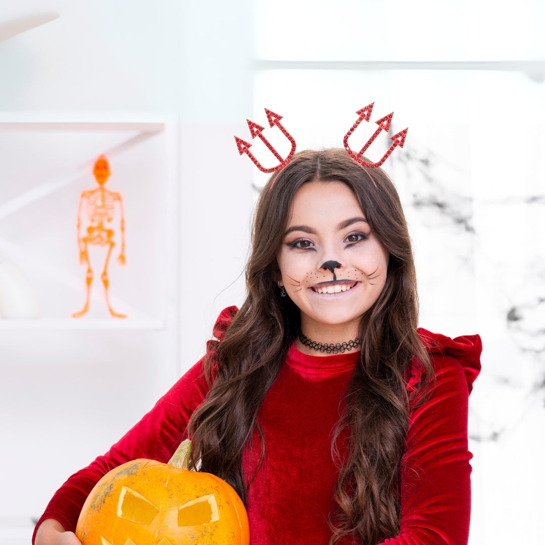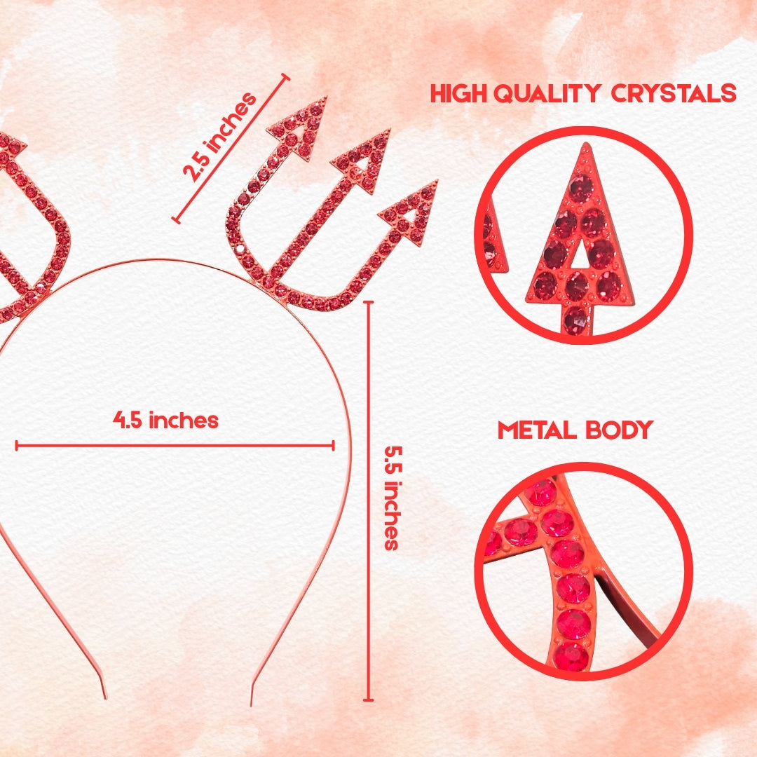 Striking Devil-Inspired Design: Features 2 bold red pitchforks (trishuls) attached to a headband, designed to bounce playfully like a head bopper—perfect for adding a fun and mischievous flair to your Halloween look.