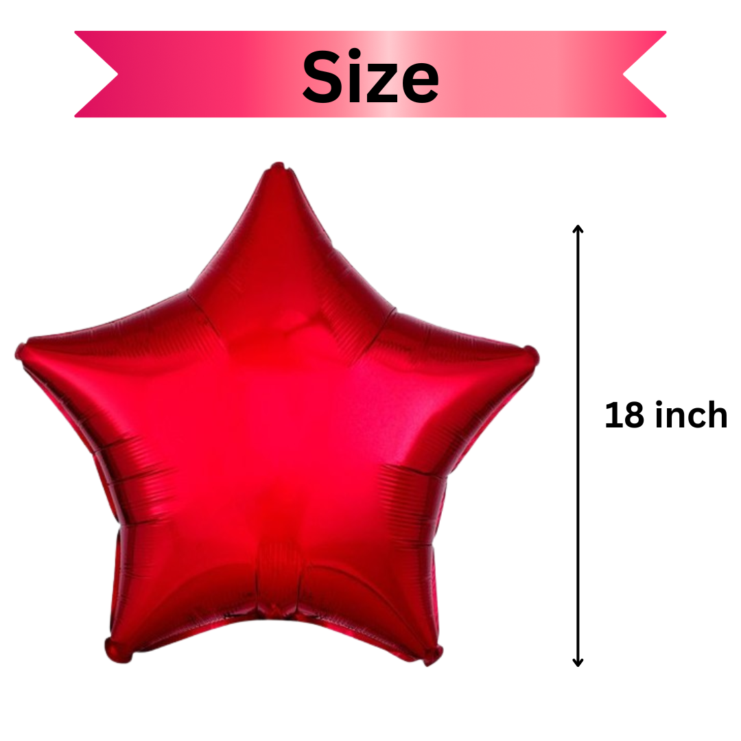 Vibrant Red Star Balloon: Elevate your birthdays, anniversaries, and parties with this striking 18-inch red star-shaped balloon, adding a pop of color and excitement to your décor.