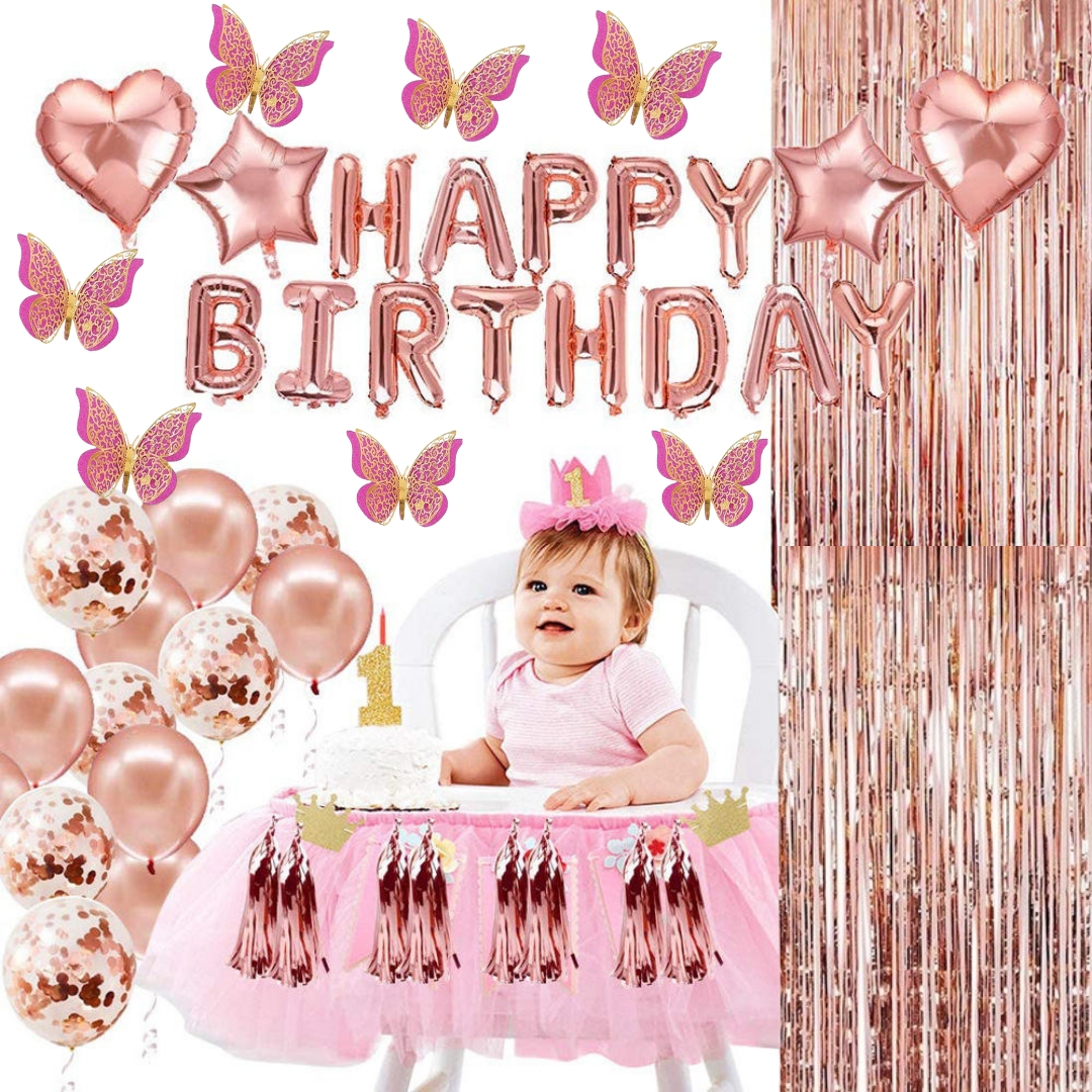 Make your little girl's birthday extra special with our Rose Gold Birthday Decoration Items!