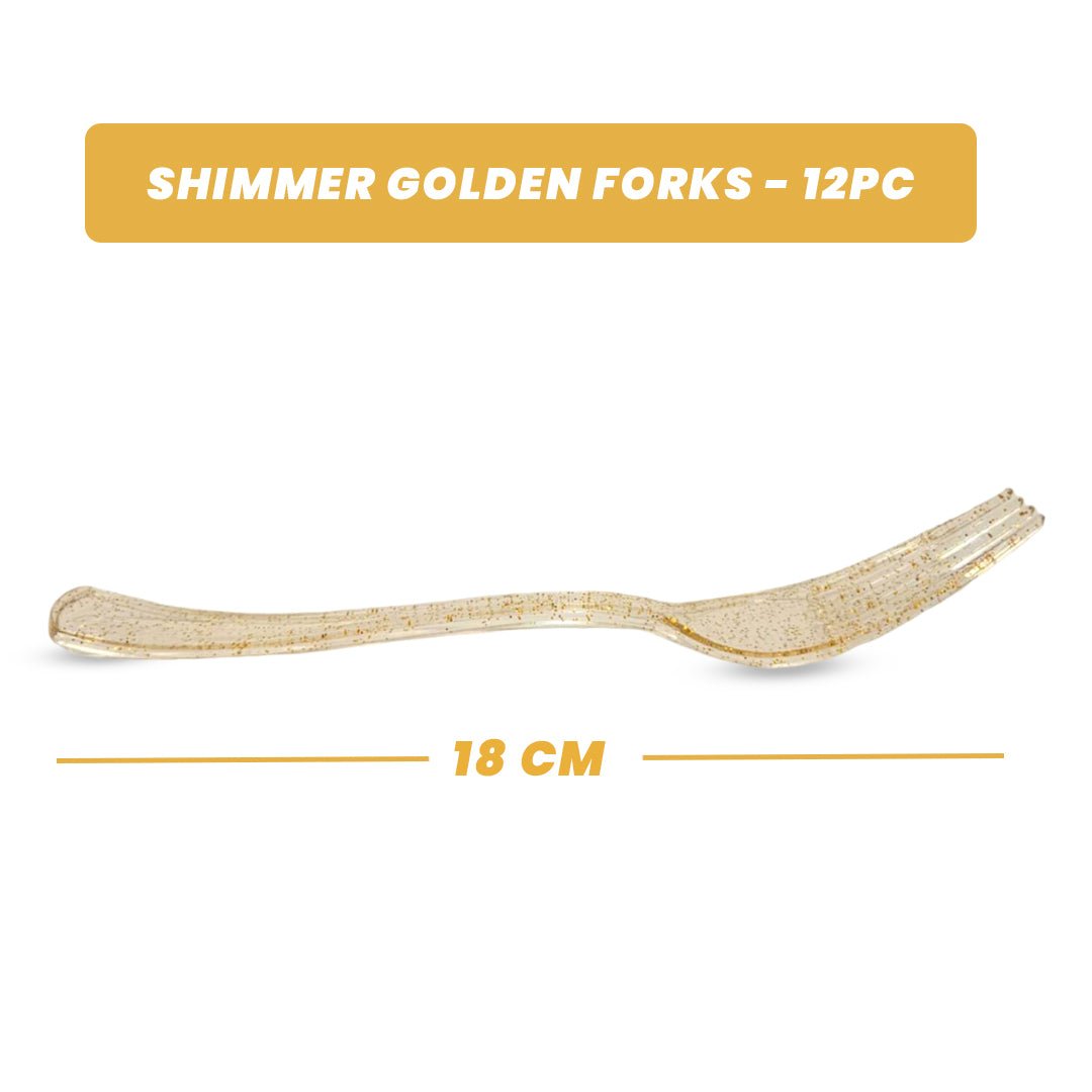 Wanna Party Shimmer Golden Forks, Forks for Party, Shimmer Cutlery Set, Pack of 12