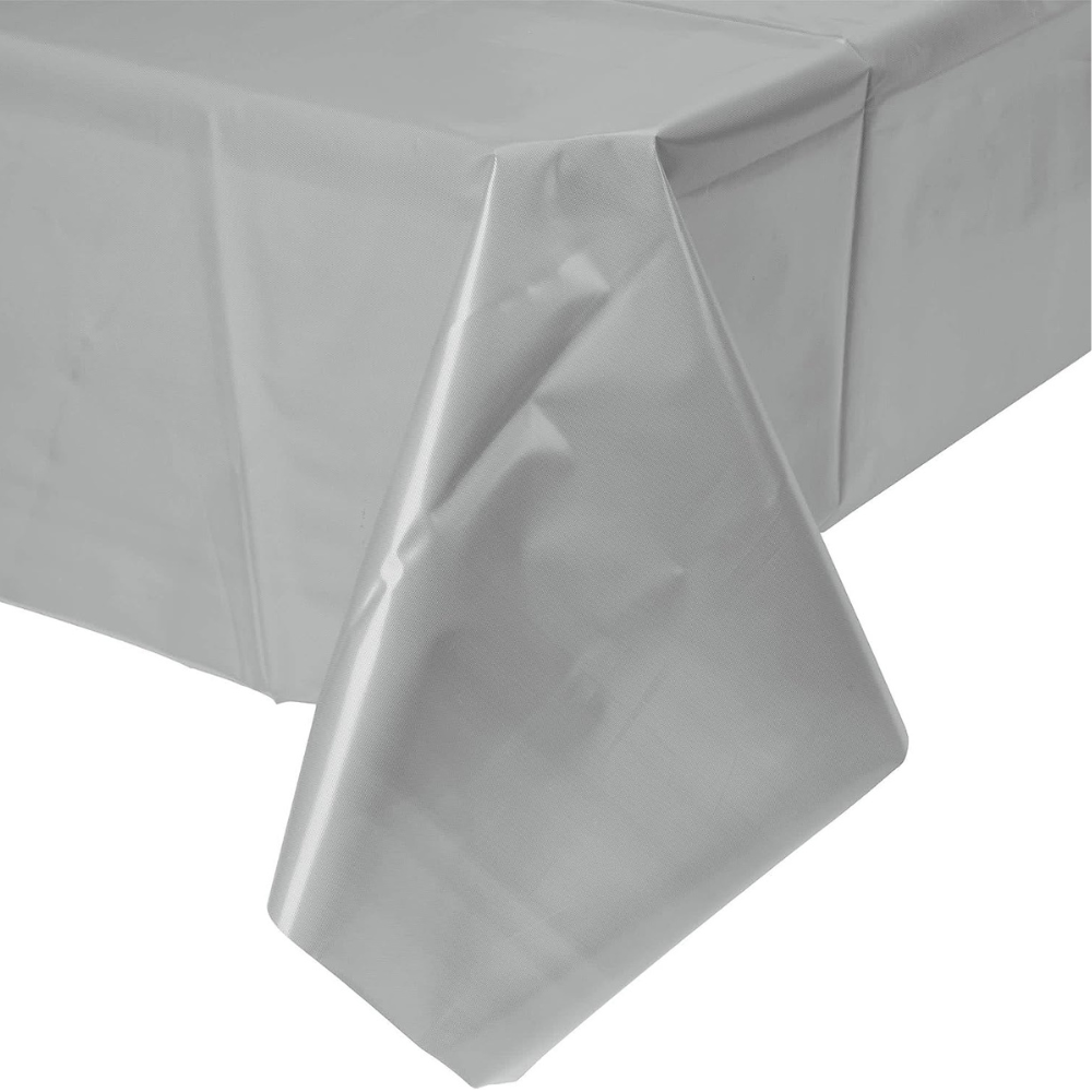 Silver Vinyl Table Cover for Party Decor - 54X108 - 1PC