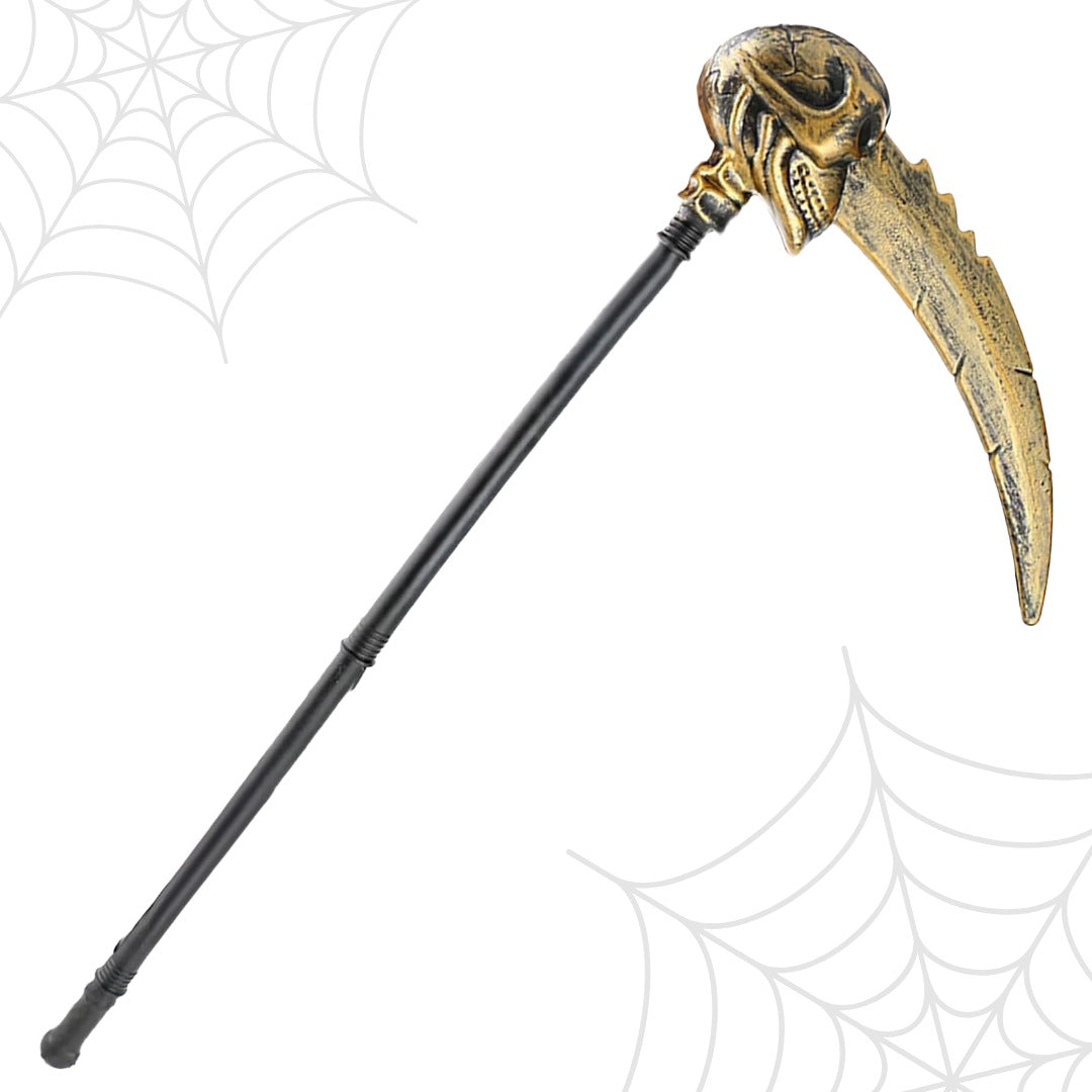 Unique and Spooky Design: Add an extra dose of fright to your Halloween setup with this Skull with Big Nose Golden Hand Holding Weapon. Its creepy design and golden finish make it a standout piece for any horror-themed party or haunted house décor.