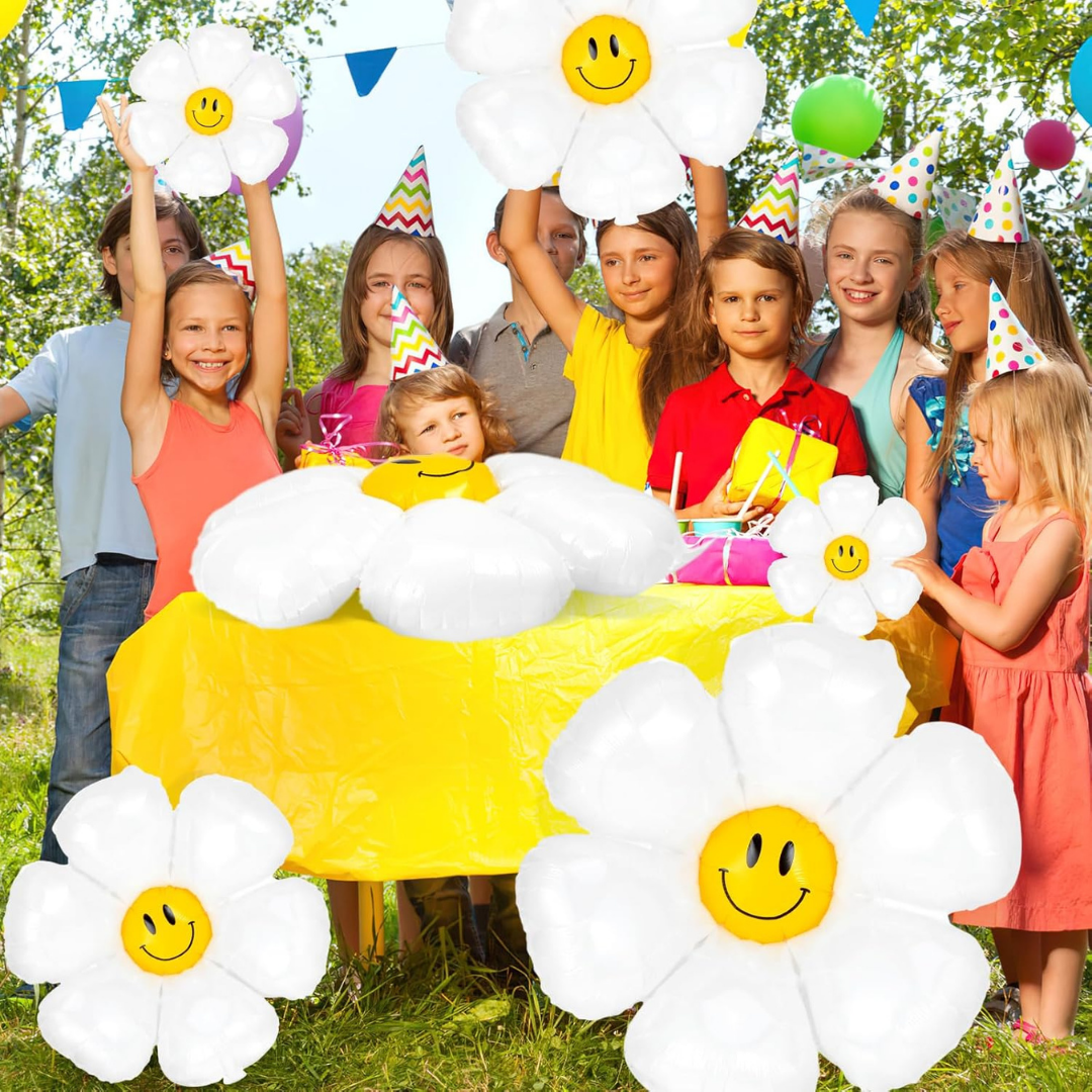 Wanna Party 18 Inch Daisy Balloons White Daisy Flower Foil Mylar Balloons Birthday, Pool Party, Summer Party, Baby Shower, Butterfly Party Decorations