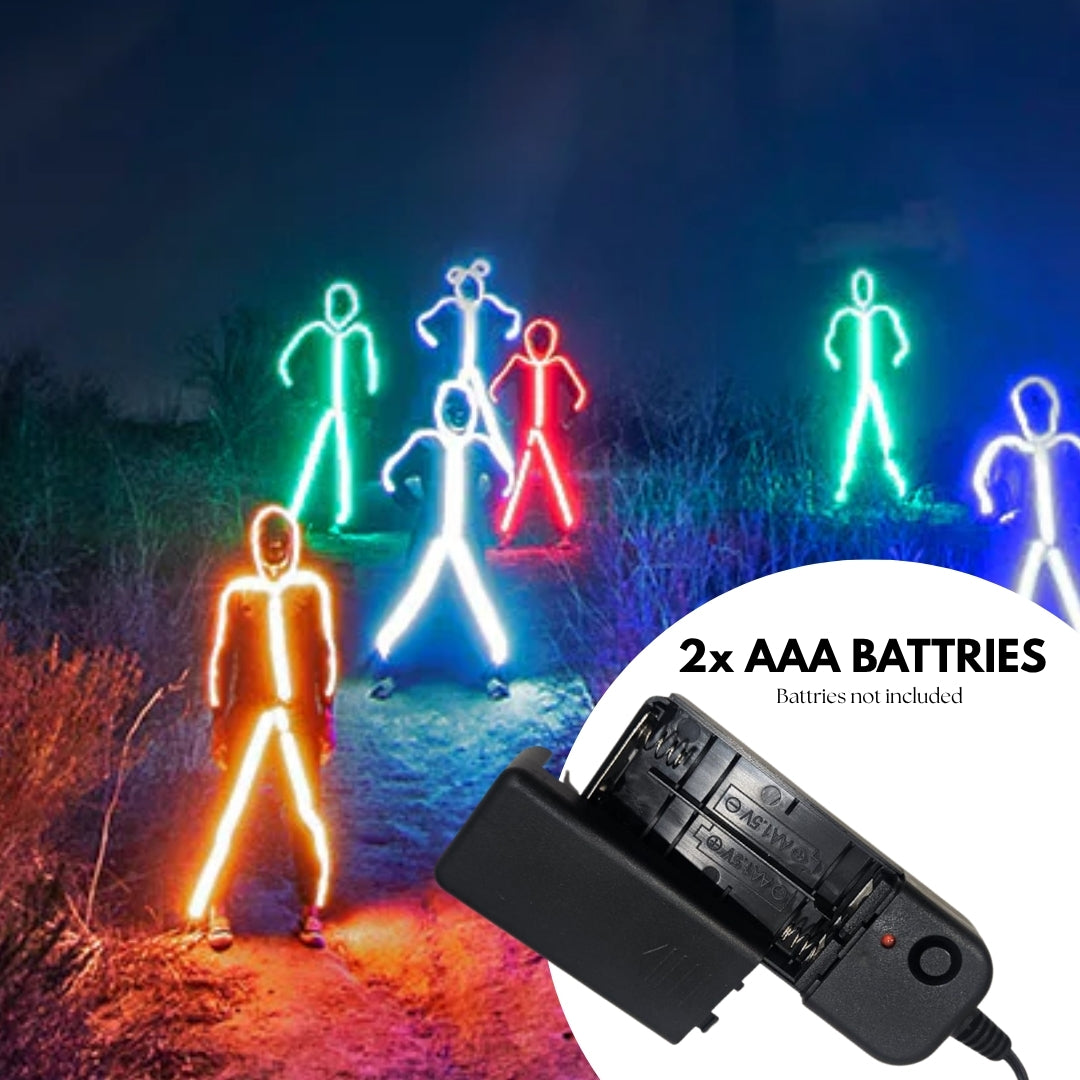 Eye-Catching Glow Design: This kids' stickman costume features vibrant EL (electroluminescent) wire outlines in neon colors creating a glowing stick figure effect that lights up the dark—perfect for evening performances, Halloween parties, or themed events.