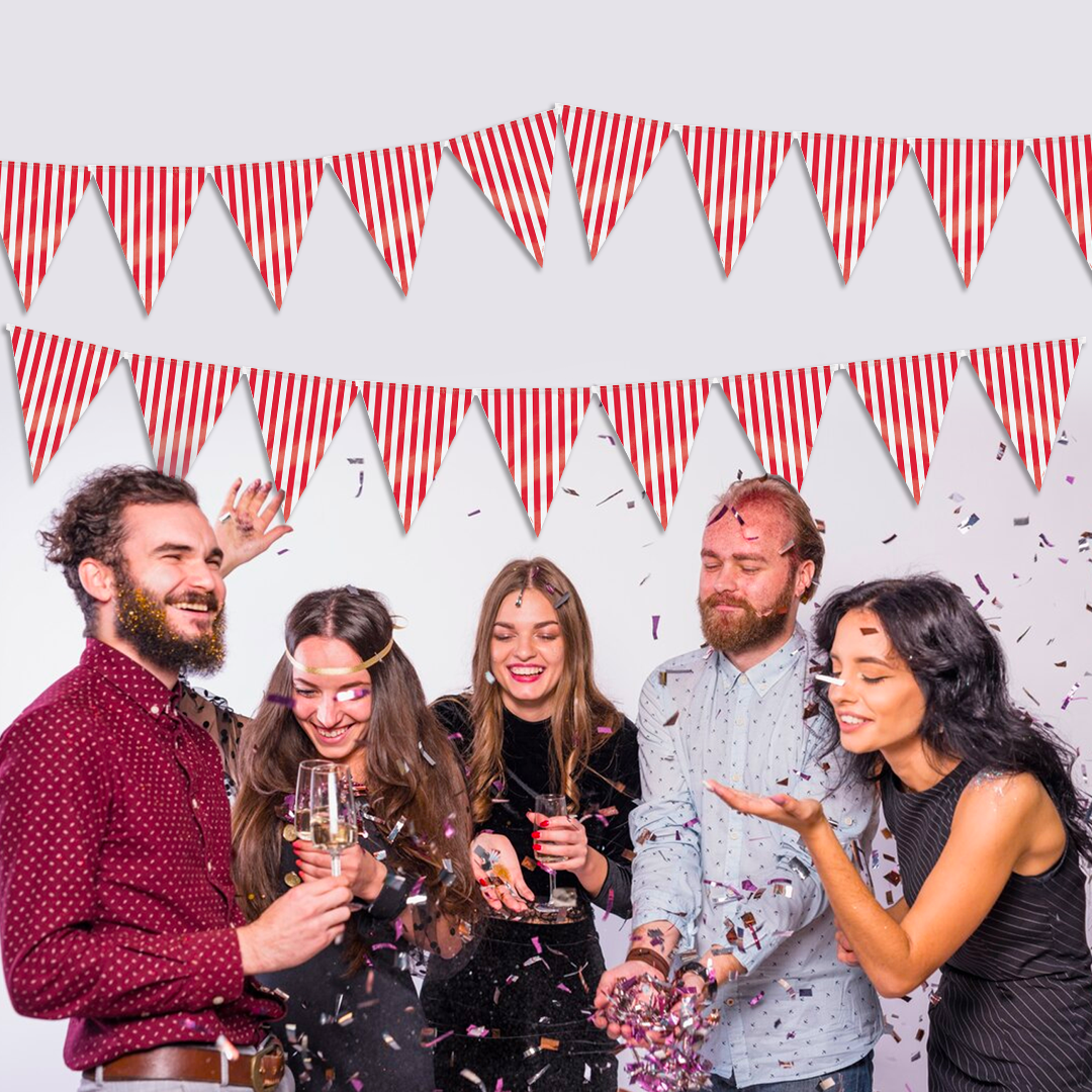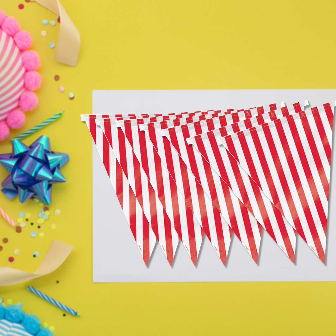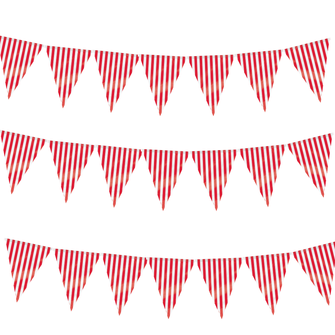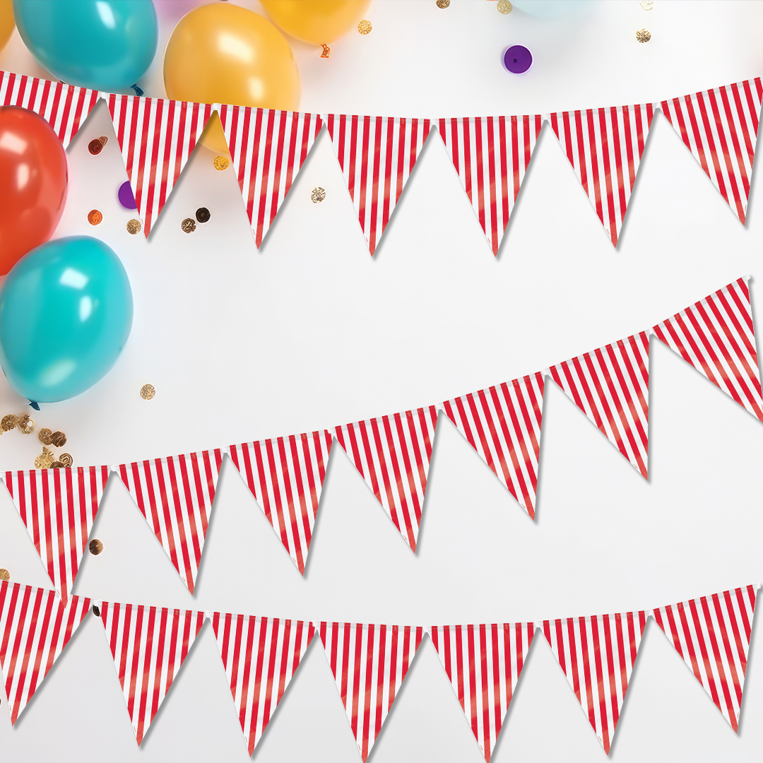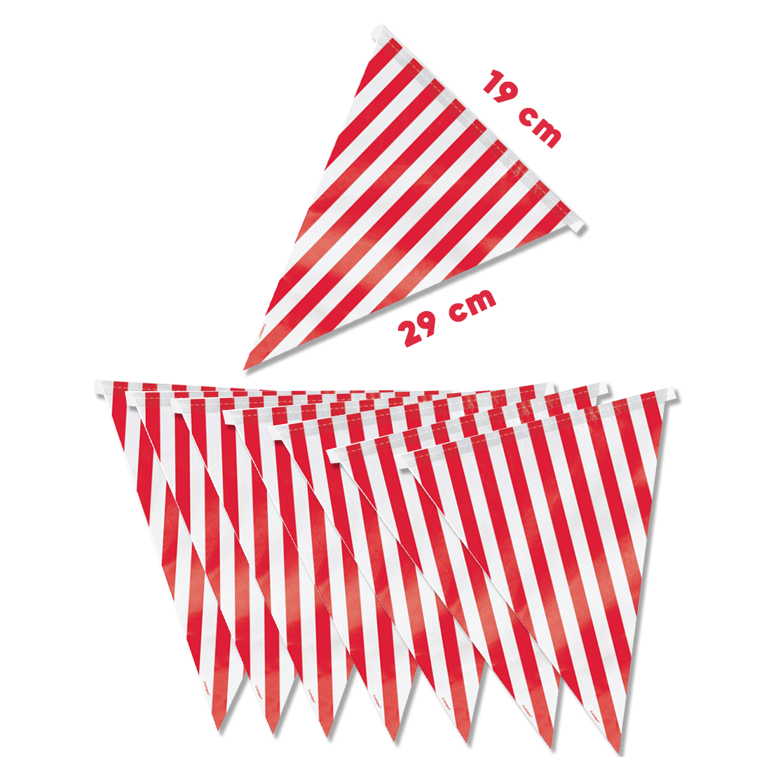 Red & White Striped Flag Triangle Buntings - 9FT - 1PC