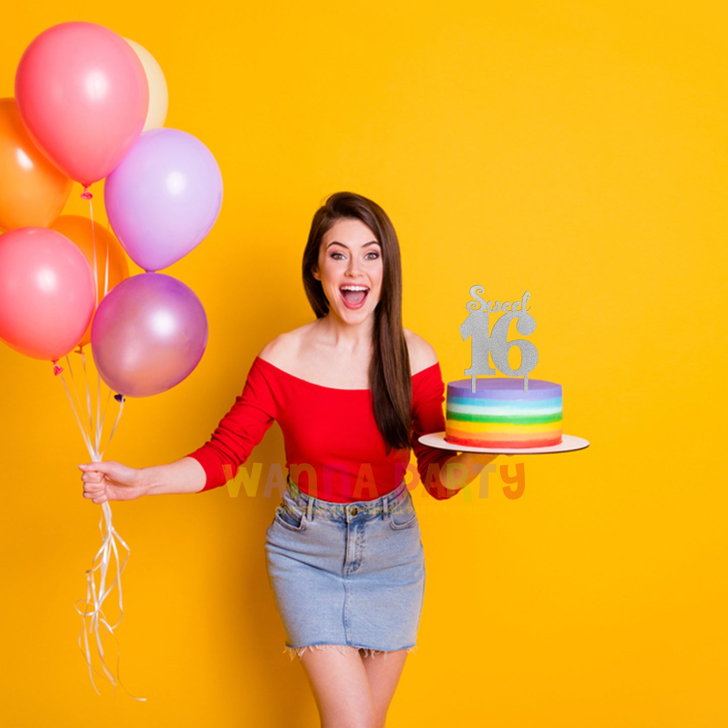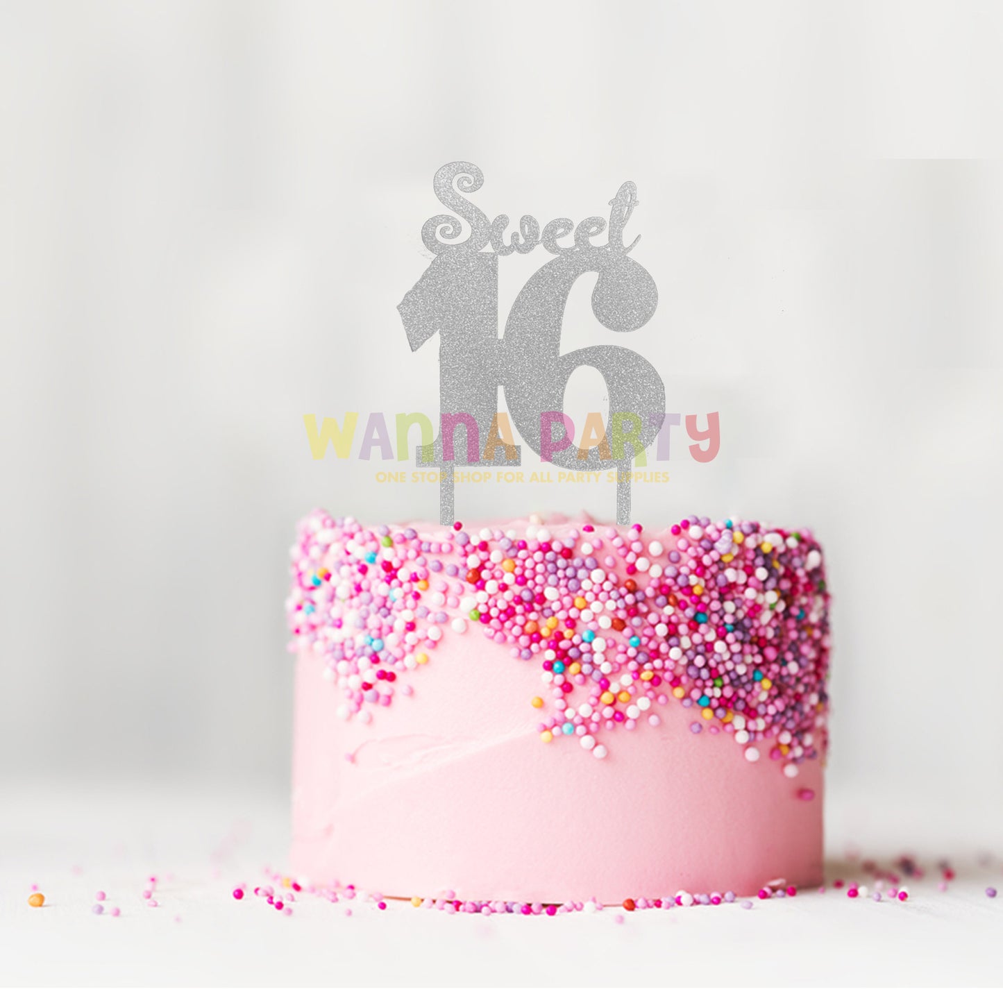 Sweet 16 Acrylic Silver Glitter Cake Topper