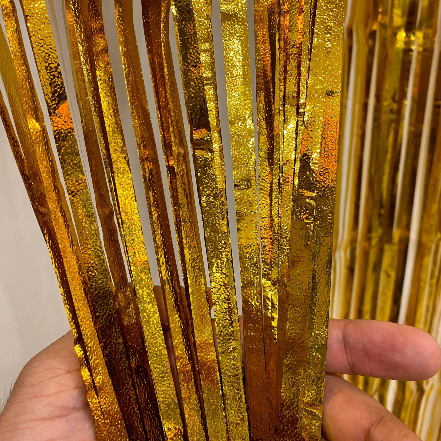 Step into a realm of opulence and grandeur with our Textured Foil Gold Curtain, an awe-inspiring masterpiece that emanates elegance and sophistication.
