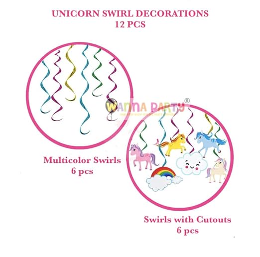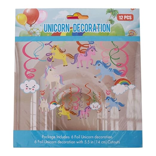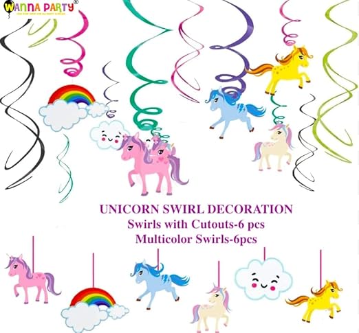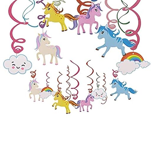 Designed to Delight Unicorn Lovers: These ceiling swirls are made for those who believe in a touch of magic. Their dazzling pastel design and friendly unicorn prints are sure to delight children and impress guests. Whether you're hosting a party for a toddler, school-age child, or just a unicorn enthusiast, these decorations will help you create a colorful and imaginative celebration.