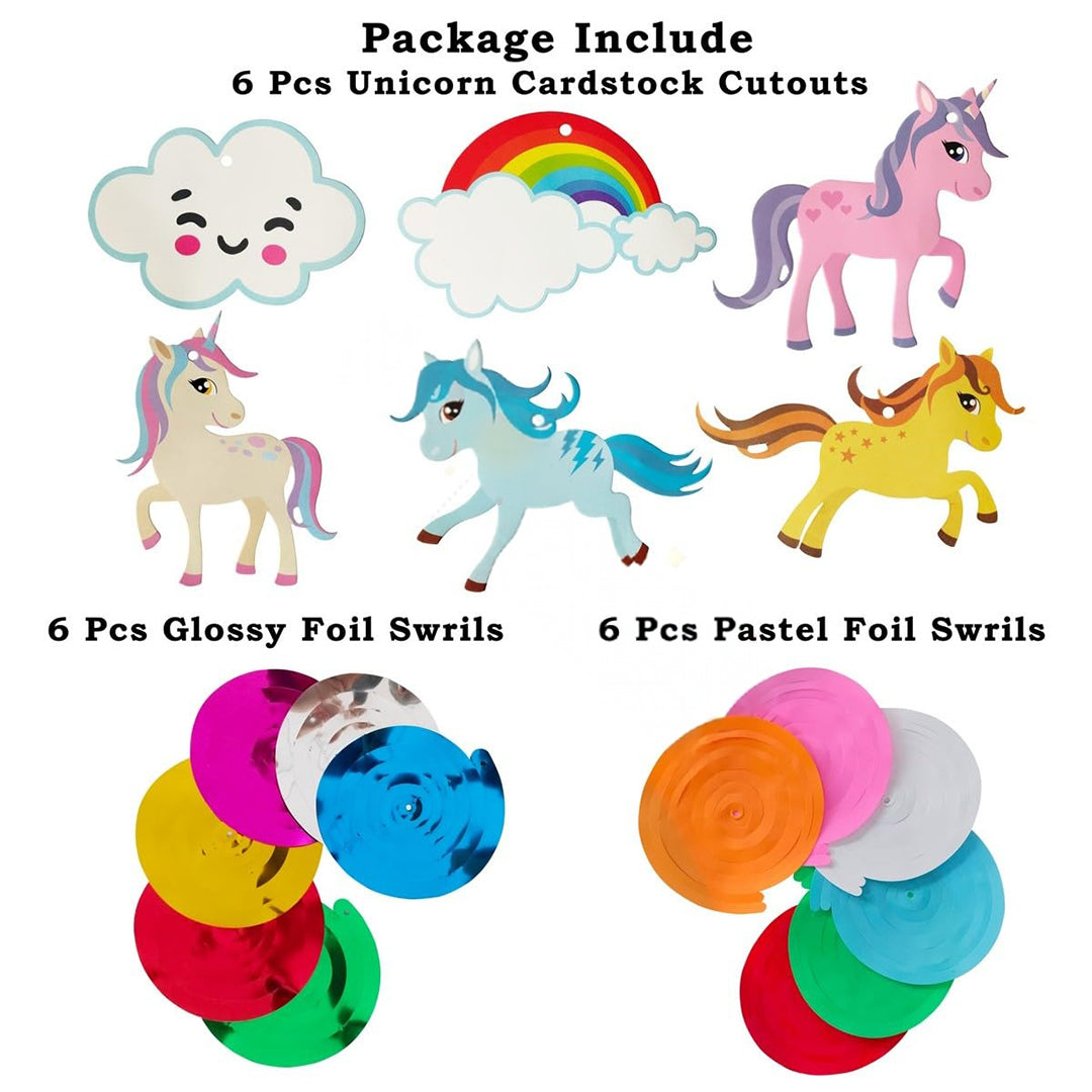 Perfect for Indoor Celebrations: Ideal for indoor spaces like living rooms, play areas, or party halls, these swirls add charm from above without taking up table or floor space. Whether it's a birthday bash or a special surprise for a little unicorn fan, these decorations elevate the setting and create memorable photo backdrops for your guests.