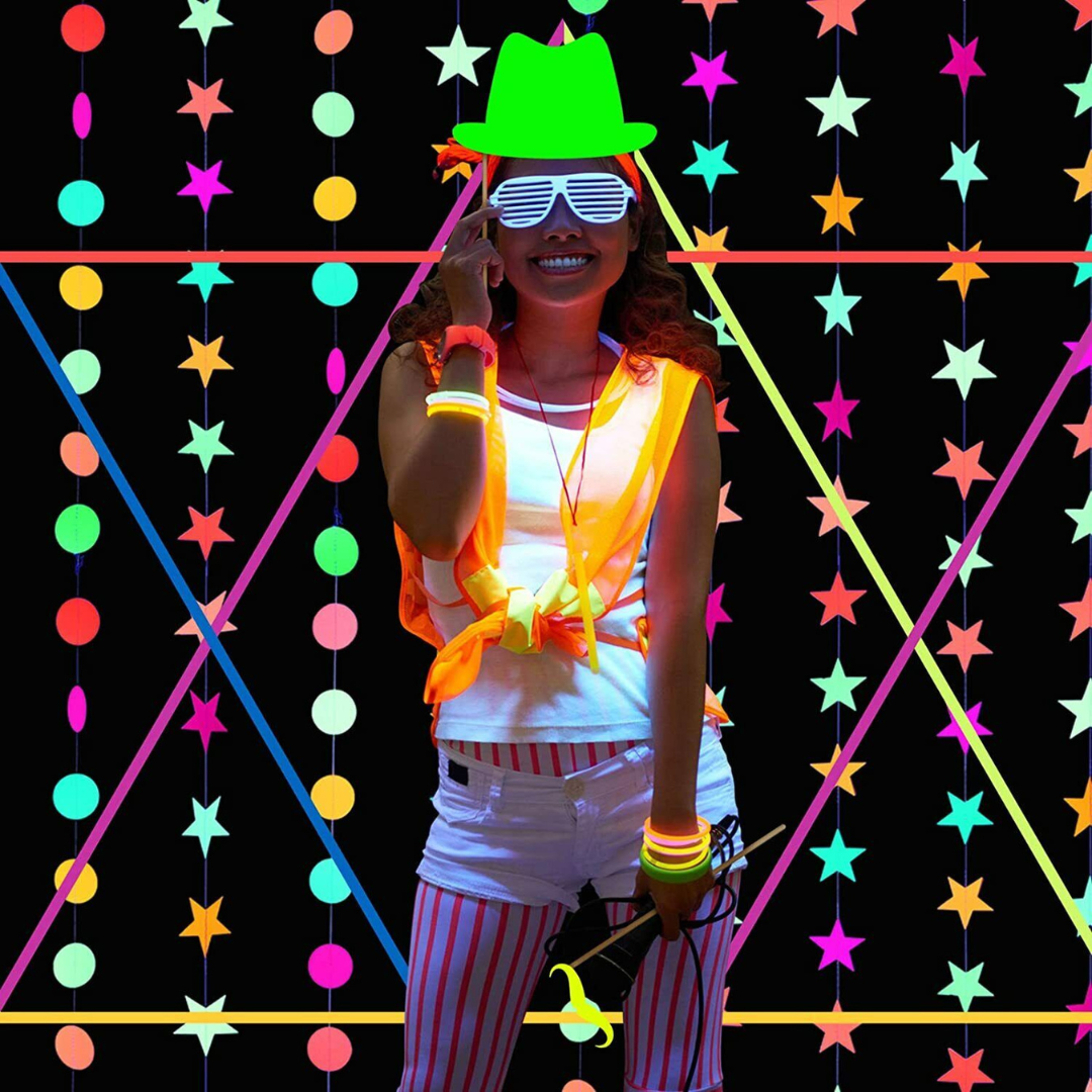 Wanna Party UV Black Light Reflective Neon Paper Banner Glow Party Glow in The Dark Hanging Decorations Strings of Circle Decoration- 5 FT