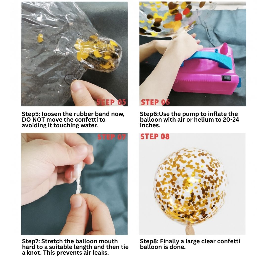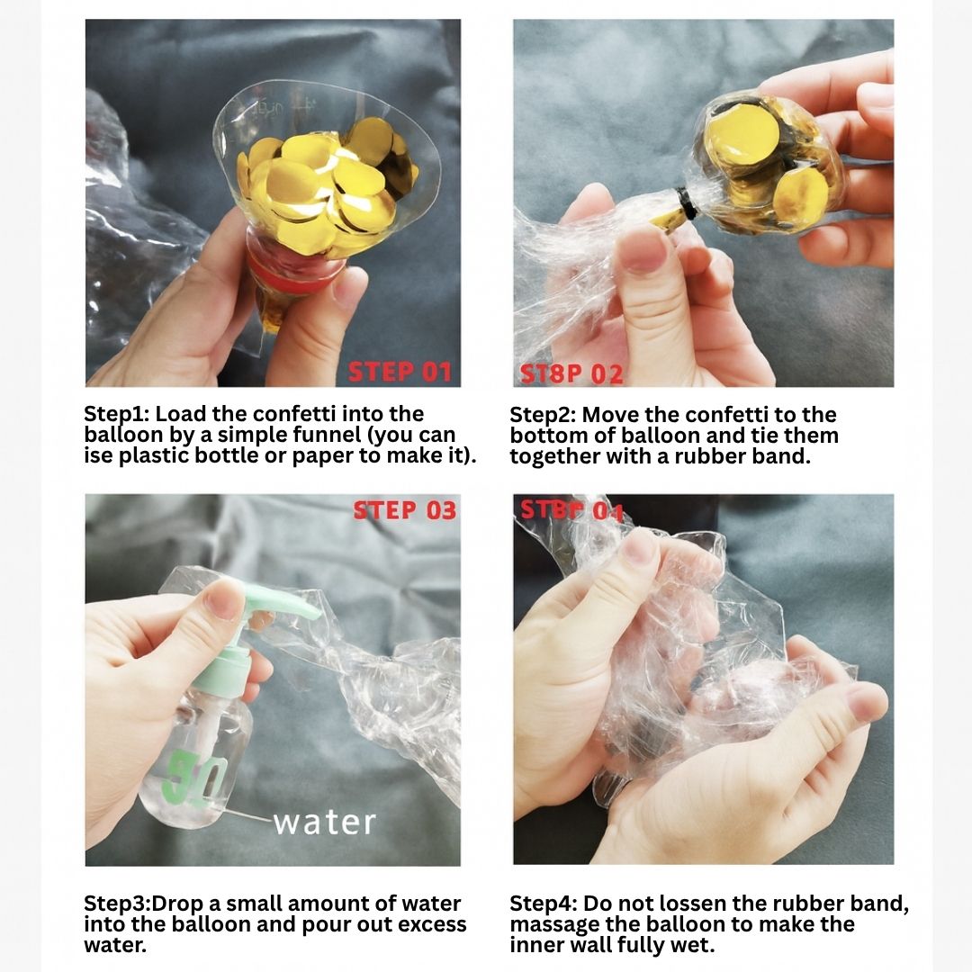 Features crystal-clear bubble balloons filled with luxurious gold confetti for a sparkling effect.
