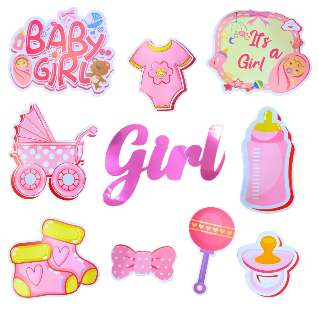 Wanna Party Welcome Baby Girl Combo Set -12 Pcs I It's a Girl Decoration Items including Its a Girl PhotoProps -10 Pcs, Welcome Baby Girl Banner-1, Welcome Baby Girl Cake Topper for Welcome Baby Girl Decoration