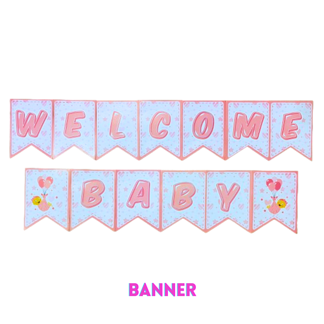 Whimsical Hanging Banner:Elevate the party atmosphere with the included hanging banner, featuring a whimsical design that spells out the joyous message, "Welcome Baby Girl."