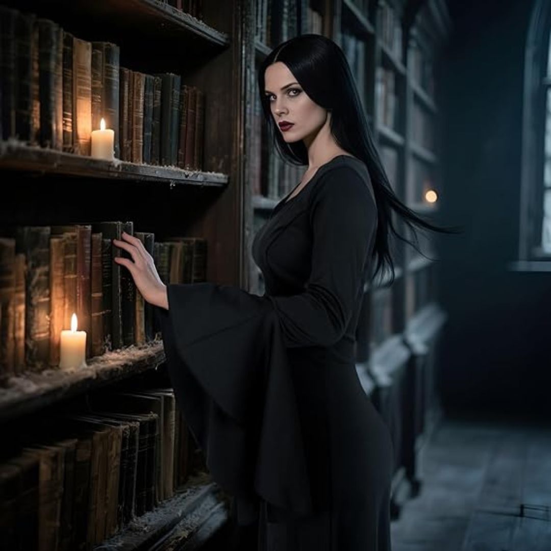High-Impact Look for Costume Events: Whether you're dressing up for cosplay, themed photo shoots, or seasonal festivities, this Morticia ensemble offers a dramatic, memorable presence. Its long, flowing silhouette and rich black color make it instantly recognizable and visually striking.