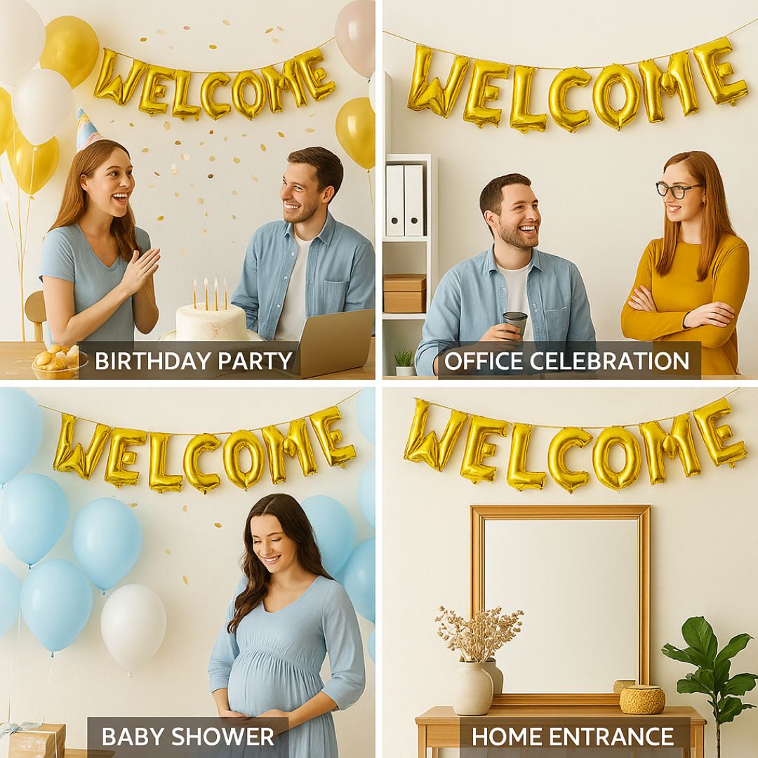 BALLOON BANNER:This dazzling WELCOME Foil Balloon Banner in Golden is the perfect way to greet your guests with a touch of elegance and warmth. The stunning welcome banner adds a glamorous and inviting atmosphere to any occasion, whether it's a wedding reception, birthday, housewarming celebration, or special event.